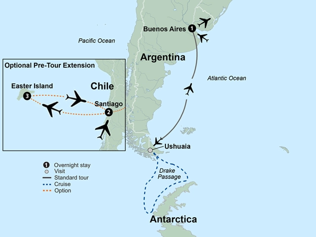 An overnight flight takes you to Buenos Aires, the launching point for your adventure into Antarctica.